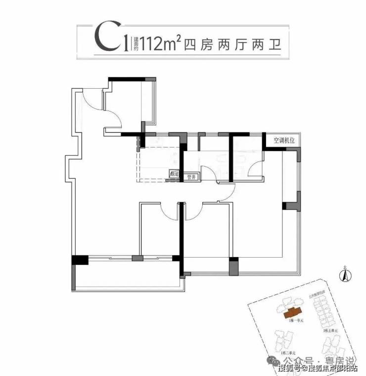 C1户型为竖厅设计,大阳台连通到次卧,主卧270度大飘窗,使用率高
