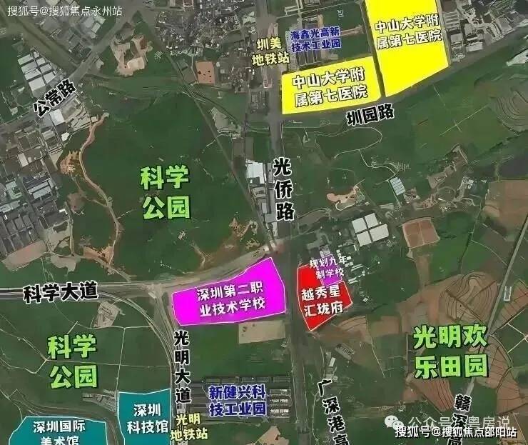 越秀星汇珑府,位于光明区新湖街道光侨路与科学大道交汇处东南侧,地处光明中心区板块,西北侧与科学公园北翼相邻,东南侧则是充满欢乐的光明欢乐田园,北侧靠近中山大学深圳校区及其附属第七医院,南面距离光明高铁站仅4.8公里。