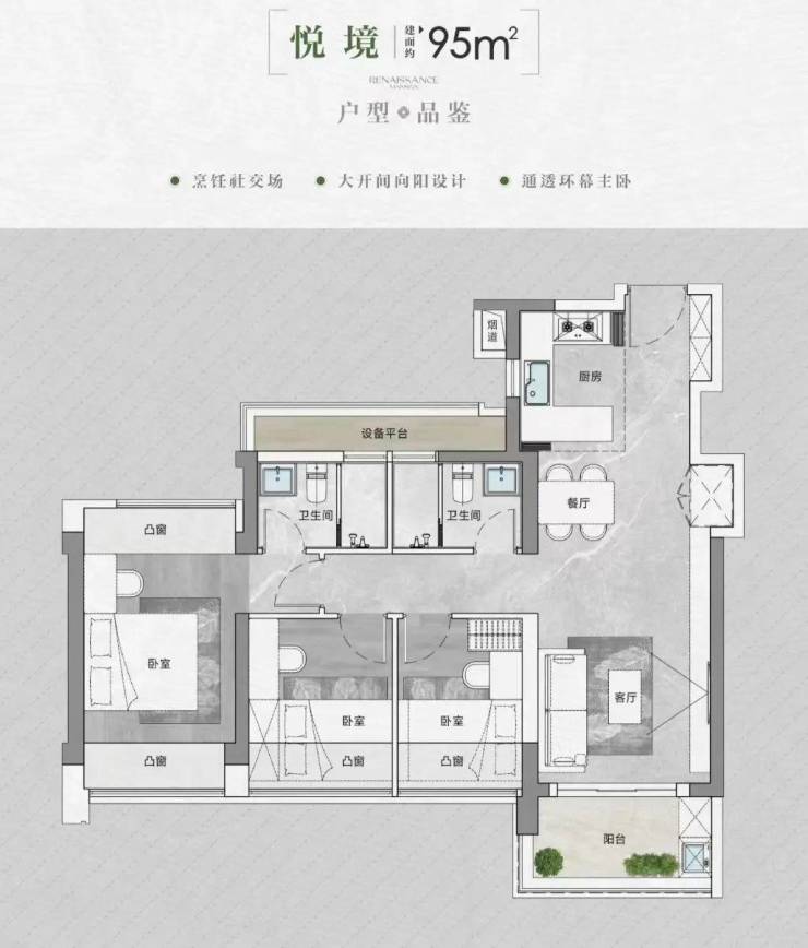 产品方面,打造约90-95-105-143㎡ 新规产品3-4房,使用率极高。