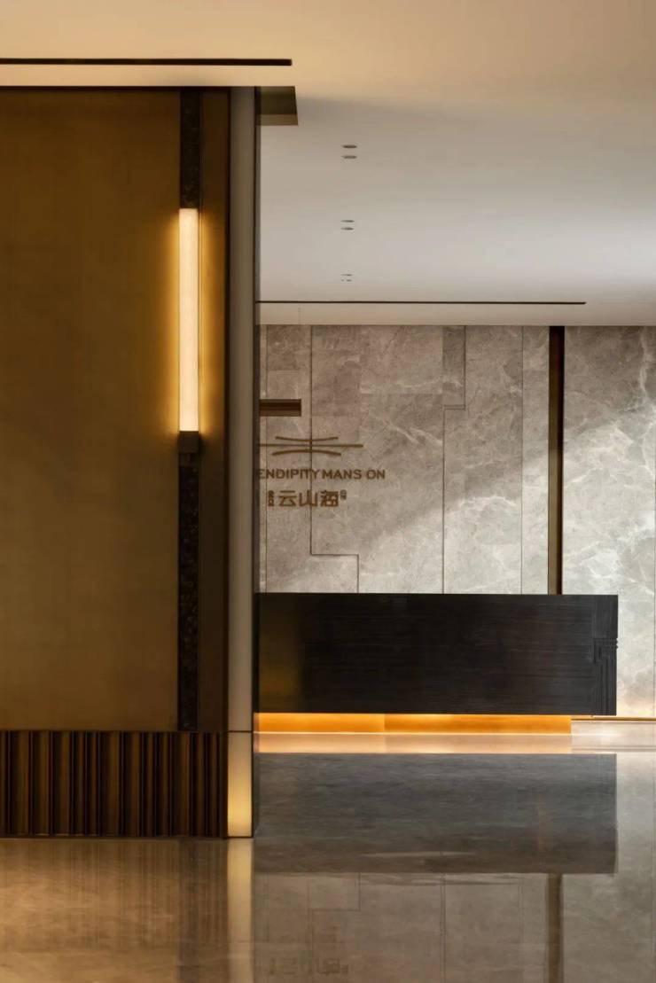 以东方雅韵为出发点,从尺度、比例、制式、材质等细节方面,将新中式建筑精髓与当代格调完美融汇于大门之中;极致挑高尺度,尽显恢弘气度