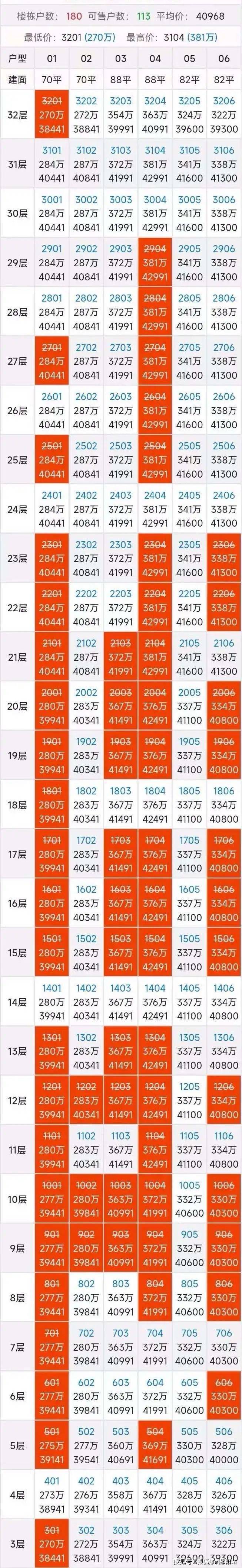 面积有70㎡的2房1卫,81㎡的3房1卫,87-89㎡的3房2卫,113㎡的4房2卫户型,备案均价4.11万/㎡,备案单价3.76-4.43万/㎡,总价264-503万/套,计划在2025年3月份前带精装交房。