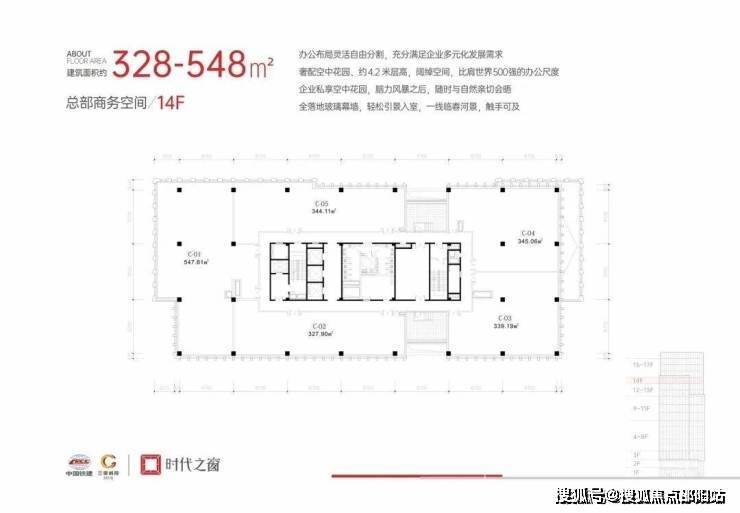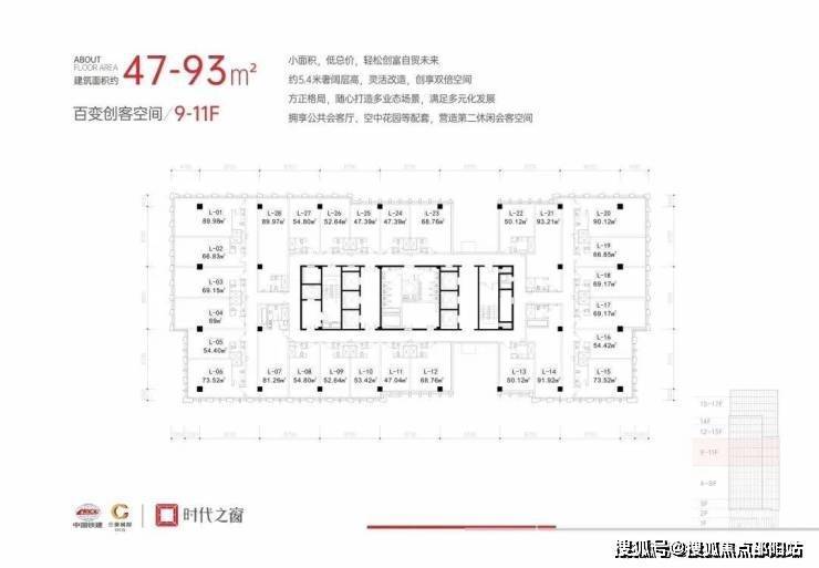 建筑设计与功能布局:由 CCDI 悉地国际设计,以 “生长” 为设计理念,将空中花园、绿化平台、屋顶绿化相结合。1-2 层为建筑面积约 74-298㎡的城芯临街金铺;4-8 层为建筑面积约 289-416㎡的总部商务空间;9-11 层为建筑面积约 47-93㎡的百变创客空间。
