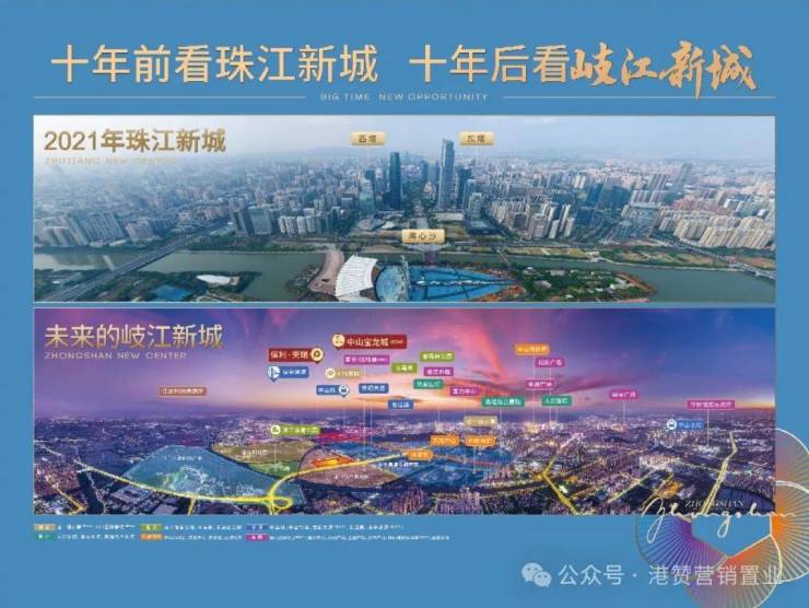 岐江新城之于中山,恰如珠江新城之于广州。珠江新城是广州天河CBD重要组成部分,国际中央商务区之一,广州总部经济最为密集区域。岐江新城以“石岐+东区”总部经济区为核心,中山宝龙300米和富元498米超高层对标牌珠江新城西塔/东塔,打造中山未来CBD中心,营造宜商宜居的空间。
