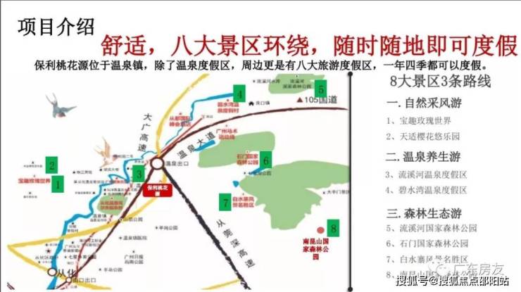 保利桃花源位于从化区温泉镇中大南方学院侧,环山而建,占地面积约30万方,是保利地产在广州首创的竖向联排设计的低密度原生态半山别墅。保利桃花源 105国道,可通过街口高速、京珠高速的等高速干线连接广州及珠江三角其他区域的。