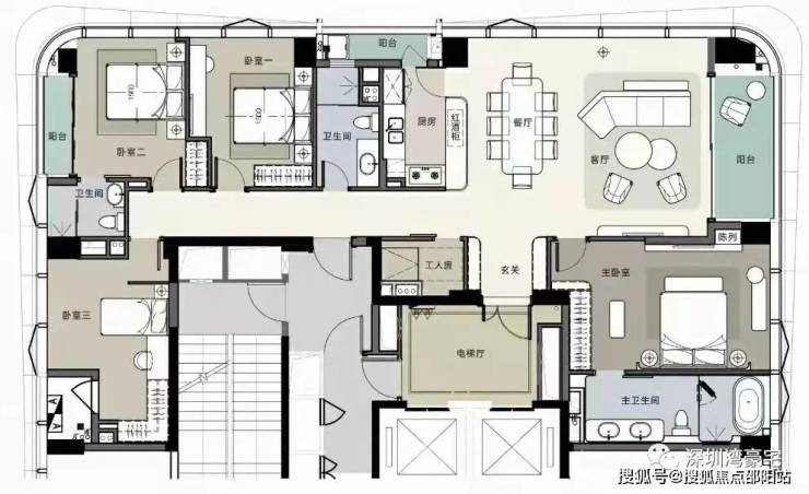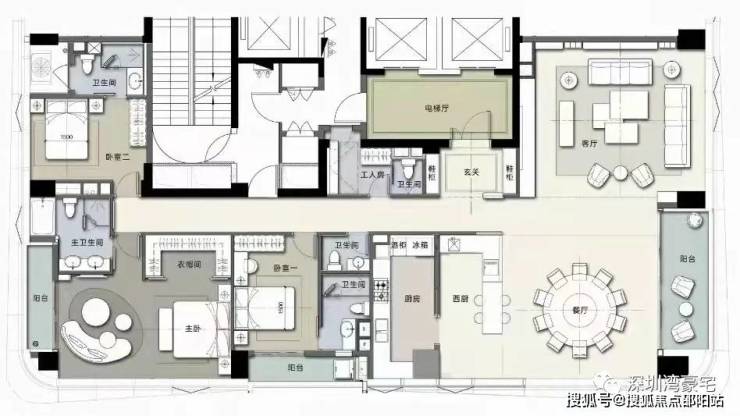1、高端豪宅产品、专梯入户,真公寓,带阳台通燃气。