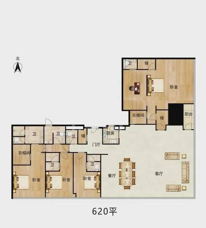 主力户型建面约340、480、620㎡,其中480㎡为LDKB一体化设计,X空间集艺赏、茶话、书房、私享四大功能,酒店式套房,为居住者营造舒心的体验。