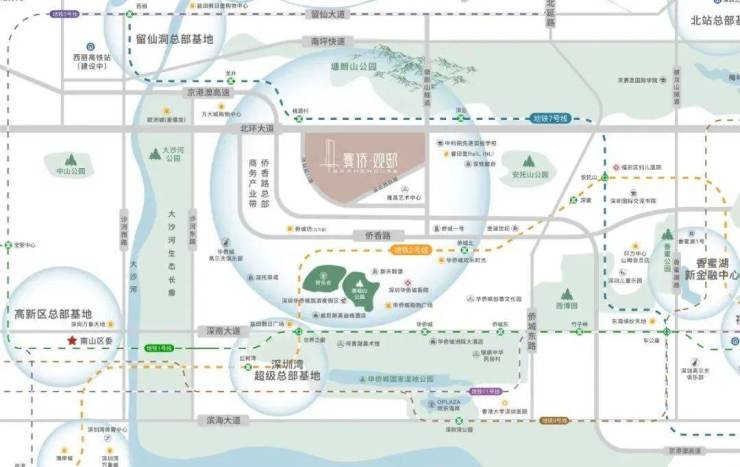 快捷交通路网,北环大道/南坪快速/侨香路/京港澳高速,20-30分钟到福田CBD、深圳北站、皇岗/福田/深圳湾三大口岸、宝安机场等,城芯而居,超享生活。