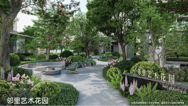 邻里艺术花园:打造林下花语、丘曼绿岛等休闲空间。