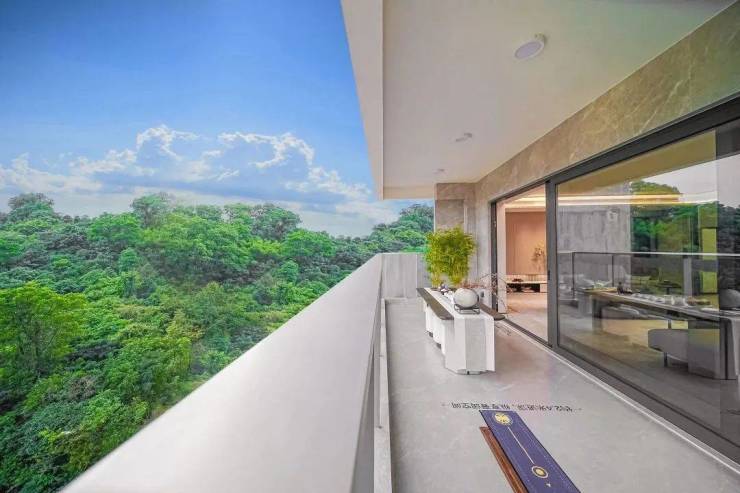 漫步至约8.3米巨幕景观阳台,很难不沉醉于270°群山环绕的凌云之境,这盛世山河便是你恢弘浩渺的背景色。