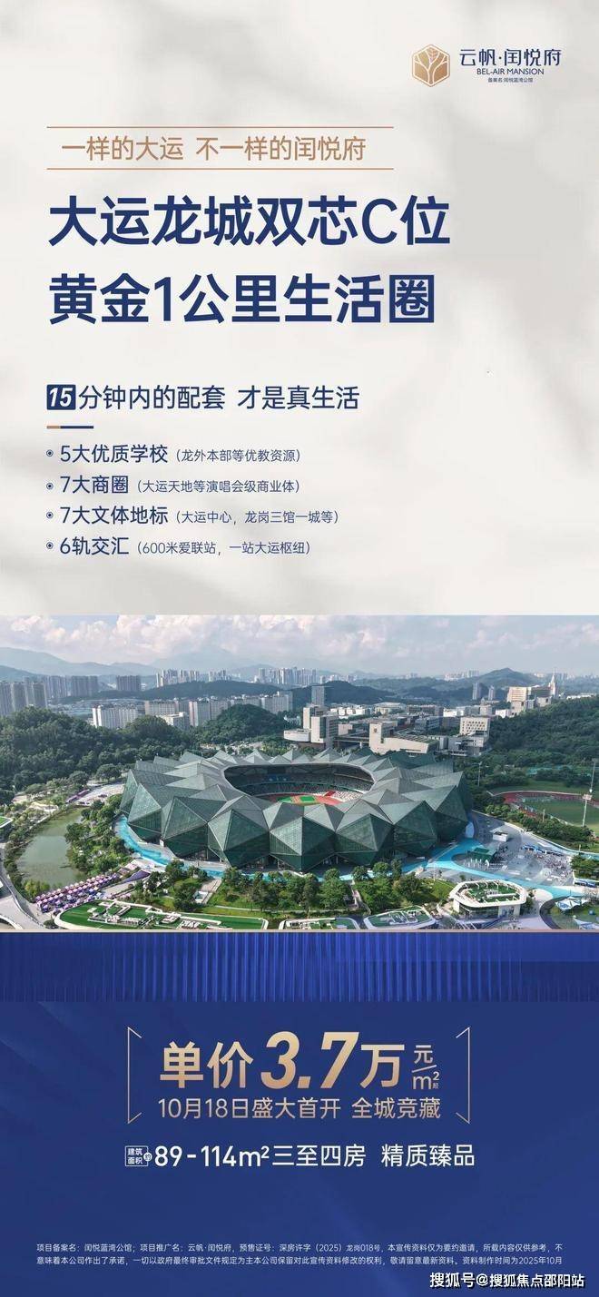 云帆·闰悦府,位于龙岗区龙城街道龙翔大道与如意路交汇处东南侧约140米,地处龙岗中心城爱联板块核心位置,周边配套成熟且发展潜力巨大。项目紧邻龙城公园、大运中心等城市地标,步行可达星河COCO Park、山姆会员店等商业配套,交通上距离3号线"爱联站"约600米,1站到大运站可换乘14/16号线及即将开通的深大城际/深惠城际,通勤便利性高。