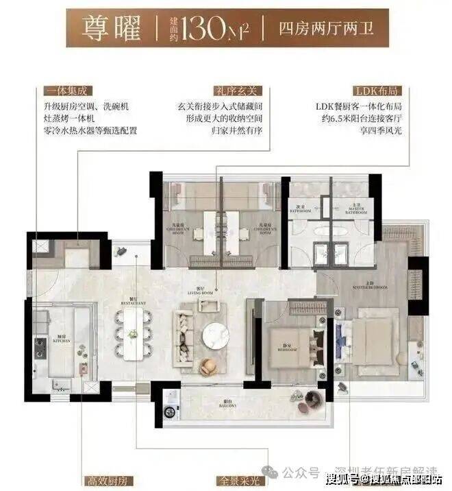 颜值臻配:升级配置超大玄关柜、内嵌冰箱、灶蒸烤一体机、零冷水热水器、中央空调及厨房空调、轻松抽橱柜、双向流新风,以一体集成的精工美学,实现功能与颜值的并存。