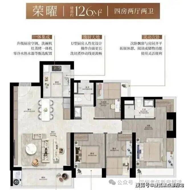 【建筑面积126㎡4房2卫】