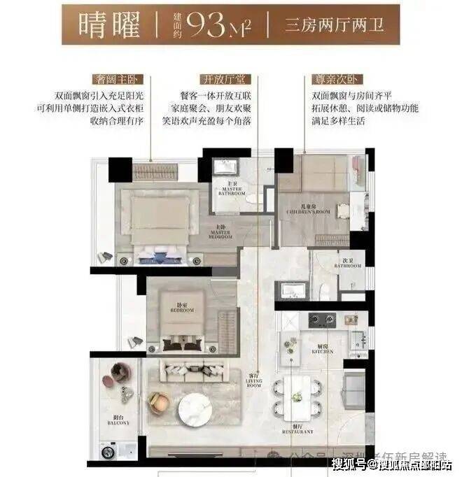 新规下的实用革新:建面约93-130㎡全南向三至四房,约90%得房率,同等面积多一房。