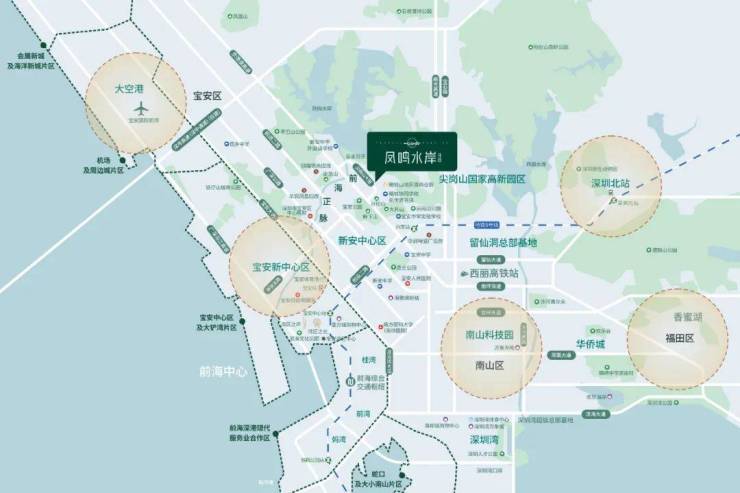 项目临近于8倍扩容后的约120.56平方公里前海核心,踞守宝安、南山福田、北站商务区机场&空港商务集群“五中心”交叉片区的核心位置,坐拥地铁5/9号西延线(规划中)/15号线(规划中)轨道枢纽及6大高速,畅享一城繁华。