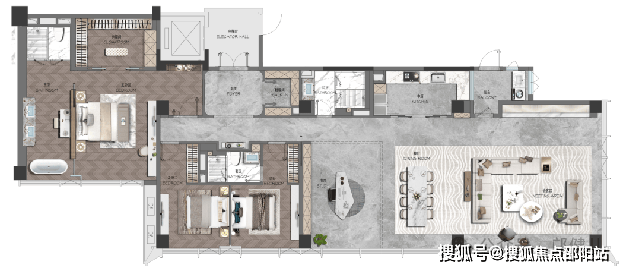 346㎡(4室2厅4卫):南朝向,双主卧套房设计,配备独立衣帽间和卫生间,私密性极佳。