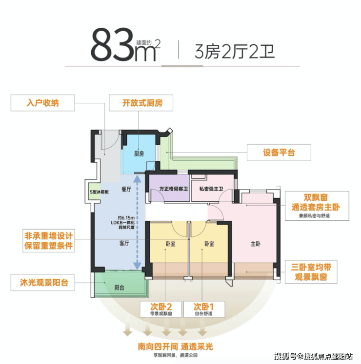 3个卧室开间西南或东南向,西南看园林、东南看观澜河碧道公园
