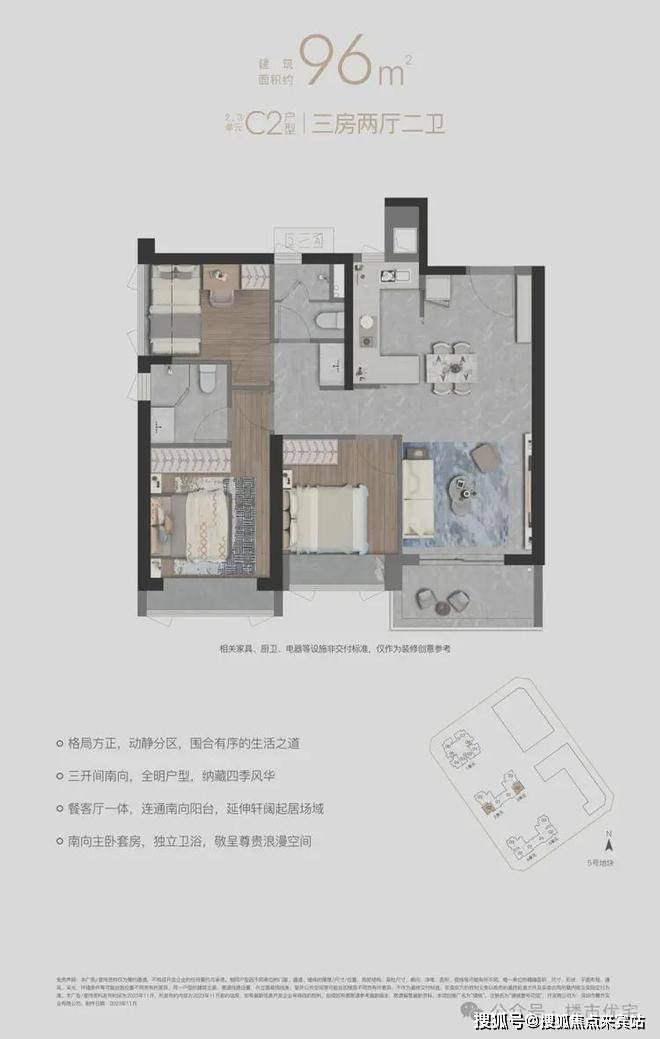 “方正全明南向三房”,格局方正,围合设计