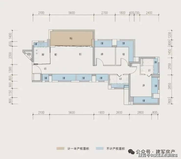 88㎡的3房2厅2卫,E1户型,设计的是横厅南北通透格局,进门入户玄关,客餐厅5.6米开间,LDKB一体化设计,客餐厅出11㎡的大阳台,主卧+1个次卧双飘窗设计,全屋12面飘窗,L型灵动式厨房,卫生间干湿分离,得房率约:77.4%(不含赠送),阳台主朝西北向。也是可以改4房的格局,套内面积68.64㎡+赠送面积24㎡=实得92.64㎡,加上赠送得房率104.45%。