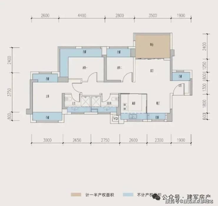 126㎡的4房2厅2卫,设计的是经典竖厅格局,进门入户玄关,客厅3.65米开间,LDKB一体化,S墙设计预留冰箱卡槽位,四开间朝南,动静分区,主卧+1个次卧270度大飘窗,客厅连接次卧出6.15米长大阳台,U型厨房,卫生间干湿分离,得房率约:77.4%(不含赠送),东南朝向。套内面积97.76㎡+赠送面积21.54㎡+实得119.3㎡,加上赠送得房率94.44%。