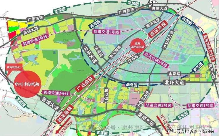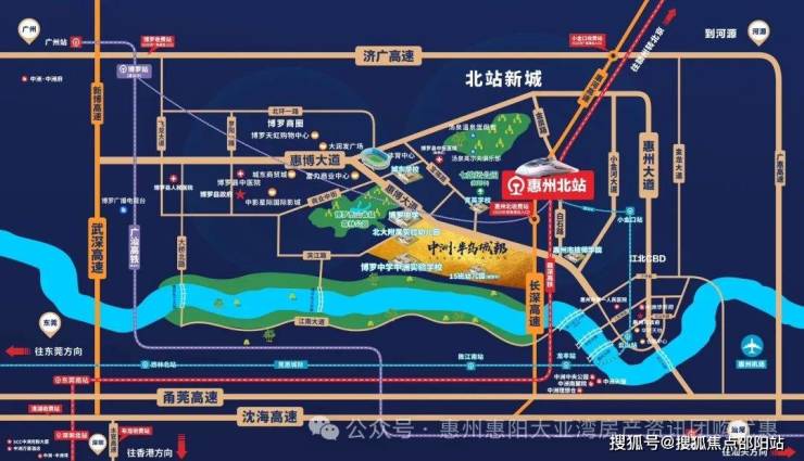 • 枢纽中心:粤港澳大湾区资源最丰富的轨道、交通枢纽,惠州北站年底通车