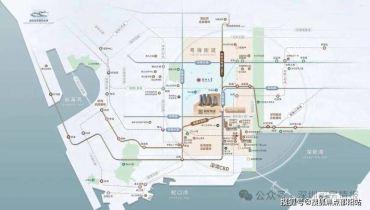 道路交通——四横三纵立体路网,四横有滨海大道、深南大道、北环大道、学府路;三纵有南海大道、后海大道、白石路出行,多主干道快速分流,畅达全城。项目直线距离蛇口码头约6.7公里,直线距离宝安国际机场也仅约15公里。