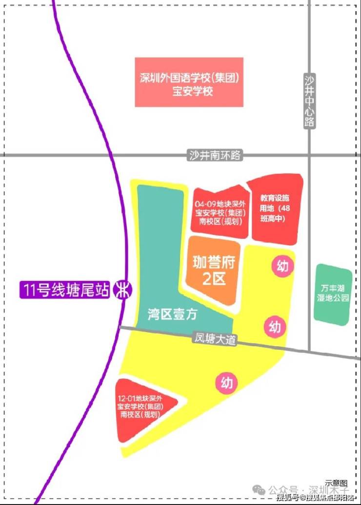 项目一路之隔深圳外国语宝安南校区(待建),项目周边更有深圳市宝安区桥头学校、塘尾万里小学、立新湖学校等名校环伺。