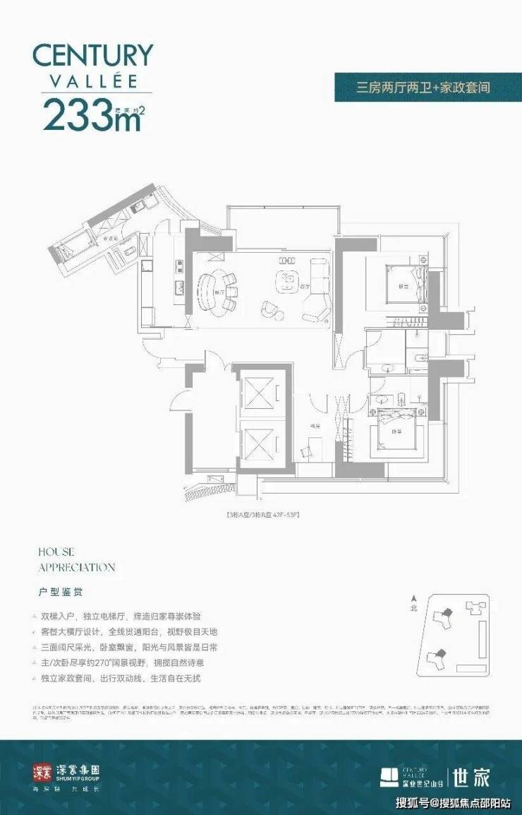 【世家大宅·户型鉴赏】🔸约233㎡ 三房两厅两卫+家政套间