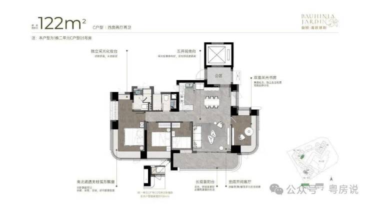 5、湾啟紫荆府车位非常充足,总共485户,车位有597个,车位占比达到了1:1.23。