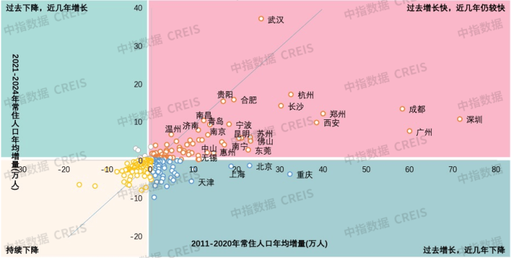 注:部分城市2024年常住人口数据尚未公布,采用2023-2021年均人口增量代替