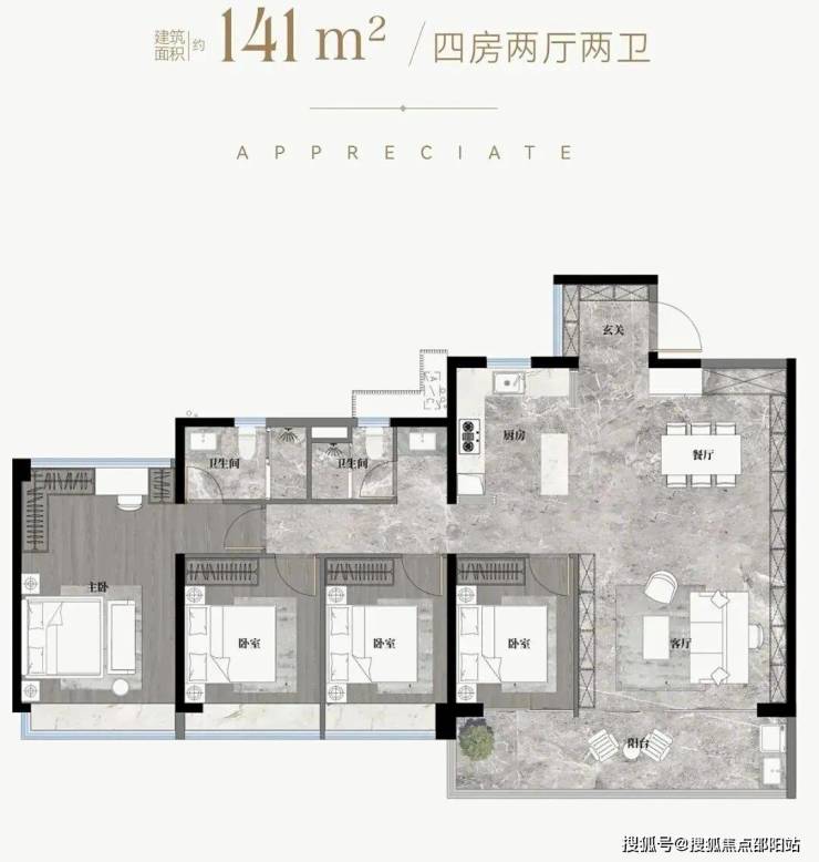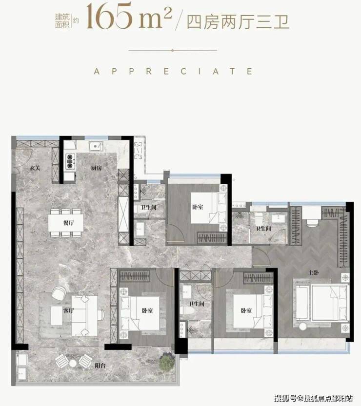 二期的10#,位置在小区中间,更加安静,定价比起去年卖的一期贵,当然,使用率方面,跟一期比起来也做了进一步提升,算上花池、阳台跟飘窗等赠送面积,使用率接近130%,主力的户型只有两个,分别是建面约105m²的四房和建面约128m²的四房。
