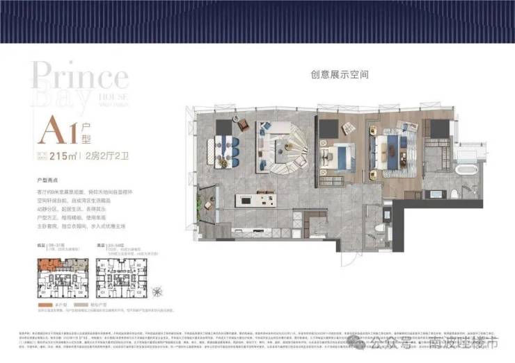 全户型纵享环幕视野。项目打造主力建面约215-415㎡纯粹品质公寓共191席,顶层为建面约1270㎡公寓产品。