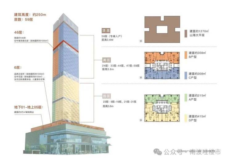 楼层高:59层(低区8-31层,高区33-58层避难层20/32层)