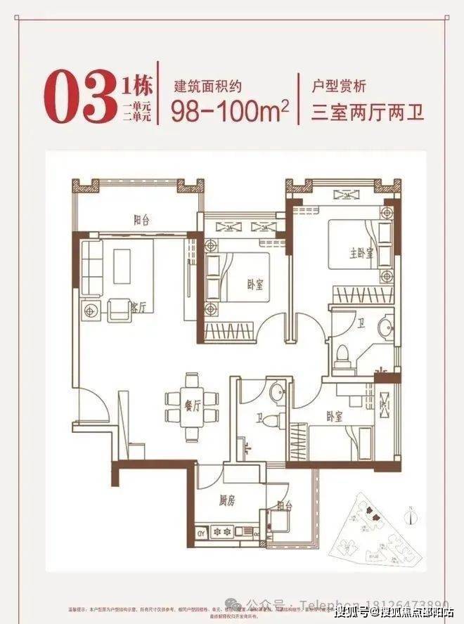 约98-100㎡三房:约3.8米阔绰大开间,视野开阔,全山景。