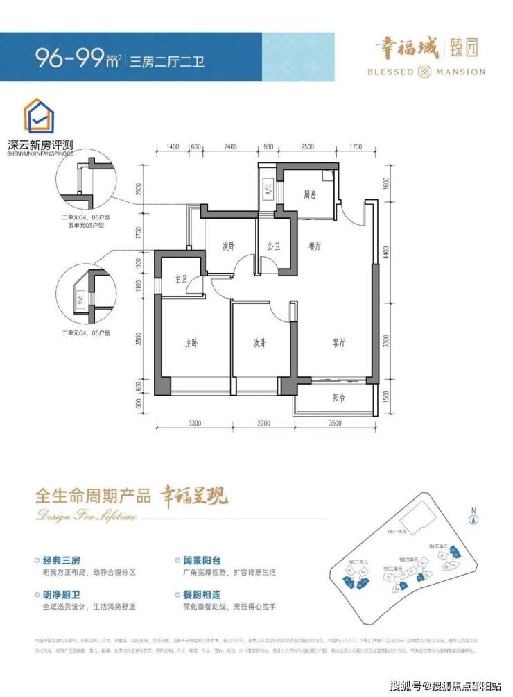 面积:96-99㎡三房两厅一卫