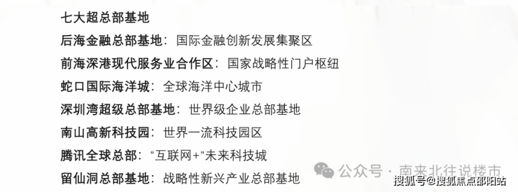 -七大全球总部基地,激荡全球资本的湾区超核,由总部经济带串联,吸引大批诸如腾讯、大疆、阿里巴巴等行业龙头企业,以及大批总部企业入驻,未来将吸引260万人才聚集。