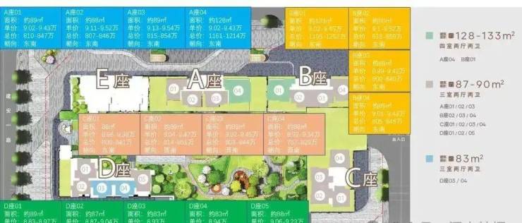 项目在售建面89-133㎡三至四房,全南向板楼设计,通风采光佳;建面89㎡三房两厅两卫,人生第一套房不必迁就;建面128-133㎡四房两厅两卫,阔绰奢宅,三代同堂的进阶之选,玖玖颂阁占地约1.4万㎡,建面约10.41万㎡,目前在售89㎡3房/128㎡4房。项目由5栋组成,E座为公租房,A~B-C座2梯4户,D座2梯5户, D座有部分回迁房,可售楼层为3-13层。