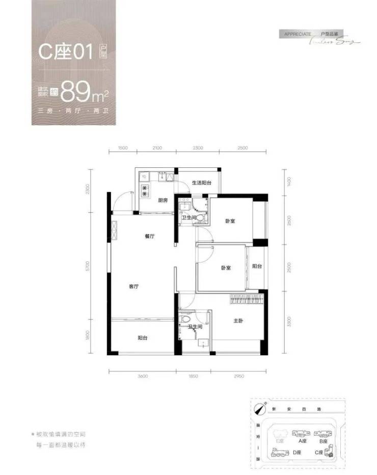 【梯户比】A-C座2梯4户,D座2梯5户