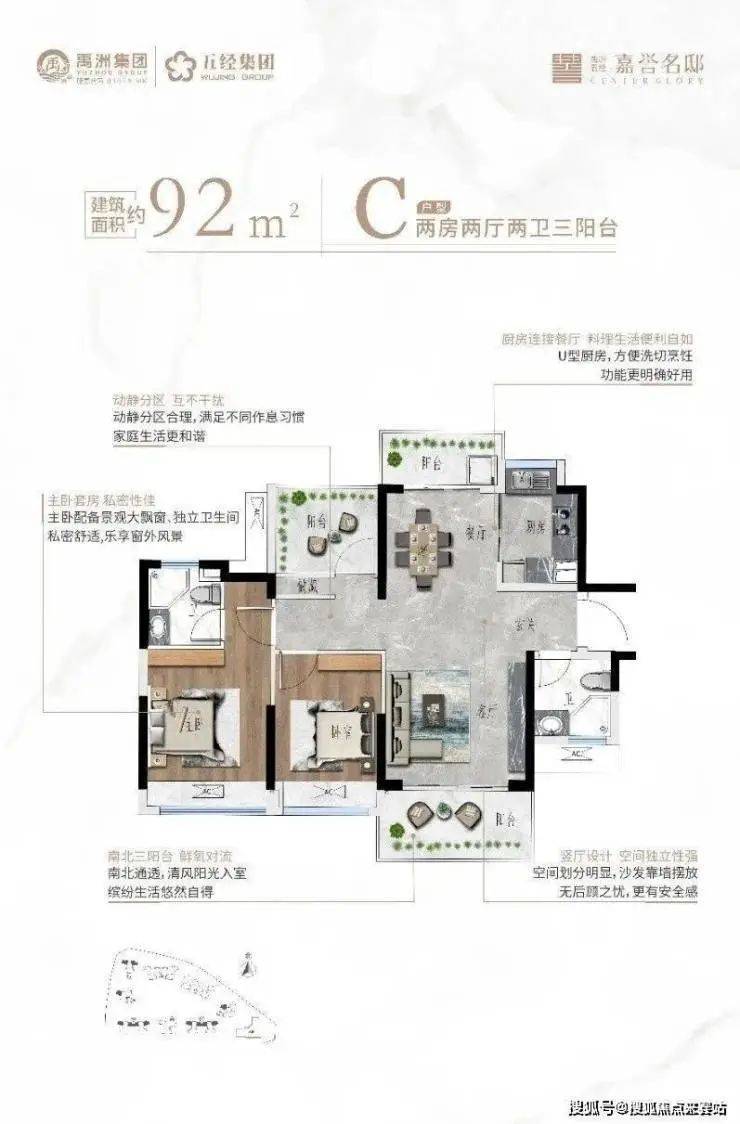 【禹洲·五经嘉誉名邸】择址湾区三城腹地仲恺城芯占位陈江核心CBD,小区占地面积:约4.2万㎡,总建筑面积:约20万㎡,总户数:1560户,由8栋高层及一栋幼儿园组成,围合式社区布局深研人居之本,禹洲五经嘉誉名邸精筑建面约78-92㎡灵动户型,全明生活格局与精妙空间布局,带给住户惬意人居体验。