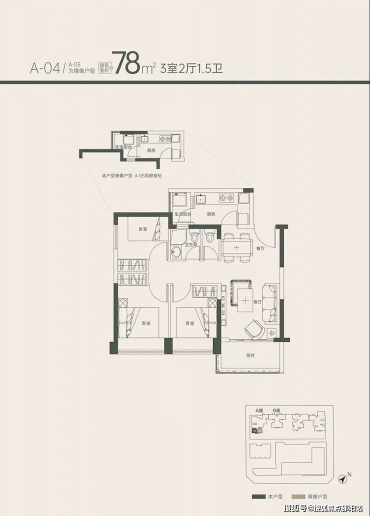 78㎡能做到三房+1.5卫+双阳台,功能性已经可以吊打科技园100㎡的新房。户型设计比较方正,1.5设计比较人性化,毕竟若三四口之家居住,多个马桶生活质素会提高很多。