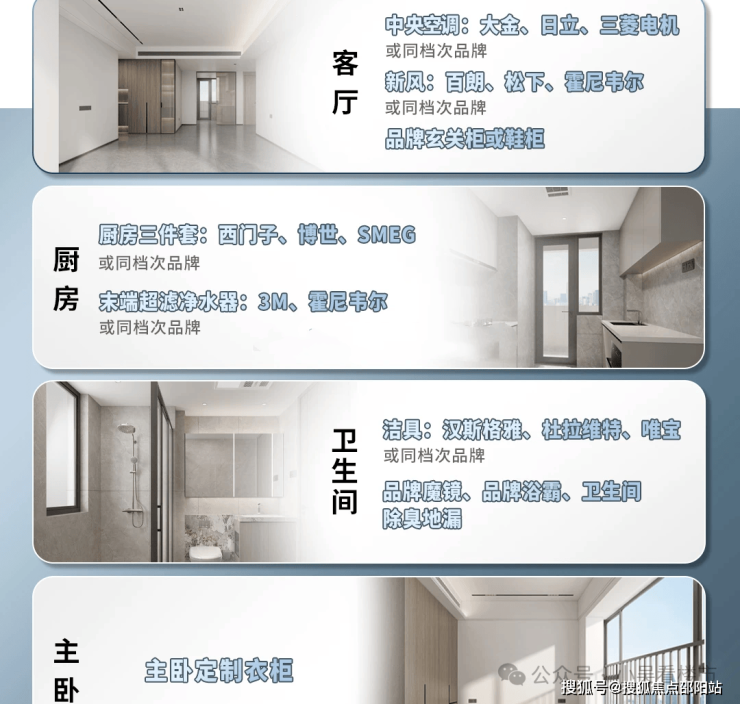室内交标都配置了国际/国内一线大牌,从中央空调,到新风系统,从厨房三件套到洁具,只要你能想得到的,基本都加入了交标清单内。