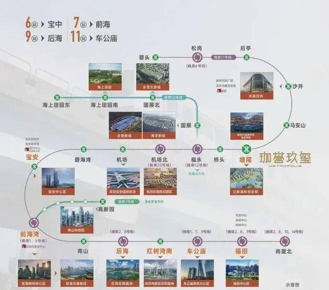 地铁:无缝连接11号线塘尾站,6站到宝中(22min),7站到前海(26min),9站到后海、11站到车公庙,便捷到达南山、福田。