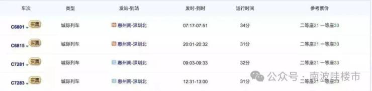 从深圳北出发,经厦深高铁至惠州南站约29分钟;从香港九龙站出发,经广深港高铁至惠州南站约1小时06分。(数据来源12306官网)