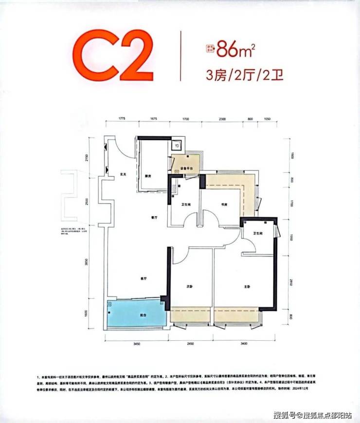 89㎡的3房2厅2卫,设计的是横厅南北通透格局,进门入户玄关,客餐厅5.7米开间,LDKB一体化,四开间朝南,3个卧室分别做到了主卧11.42㎡/次卧7.31㎡/次卧6.93㎡(实测面积,去掉墙体),主卧还带1个设备平台,主卧连接客厅出5.5米长的超大阳台,U型厨房,卫生间三段式分离,赠送面积高达20.09㎡,实际得房率约104%(包含赠送),西南/东南朝向