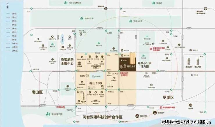地铁:项目属于岗厦北地铁口项目,岗厦北汇集有地铁2号线(8号线)、10号线、11号线、14号线;另外,项目距离莲花村地铁口步行距离约720米,可搭乘地铁3/10号线