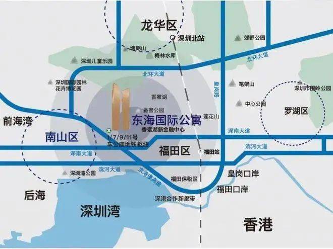 东海·国际公寓的位置在深圳市福田中心区香蜜湖和车公庙交汇处。