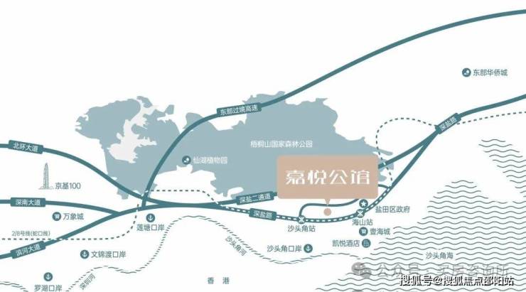 1 站达罗湖,9 站抵福田 CBD;深盐路作为封面标杆,直连深南大道、滨河大道,约30 分钟贯通福田、南山;沿海高速、坪盐通道等快速路网织就无界出行网。项目更有沙头角、莲塘双口岸加持 —— 步行约 10 分钟通关香港,未来无界双城生活。