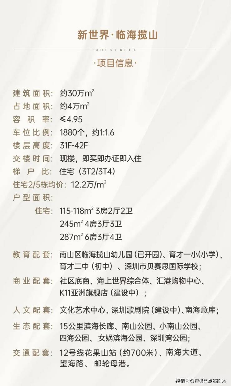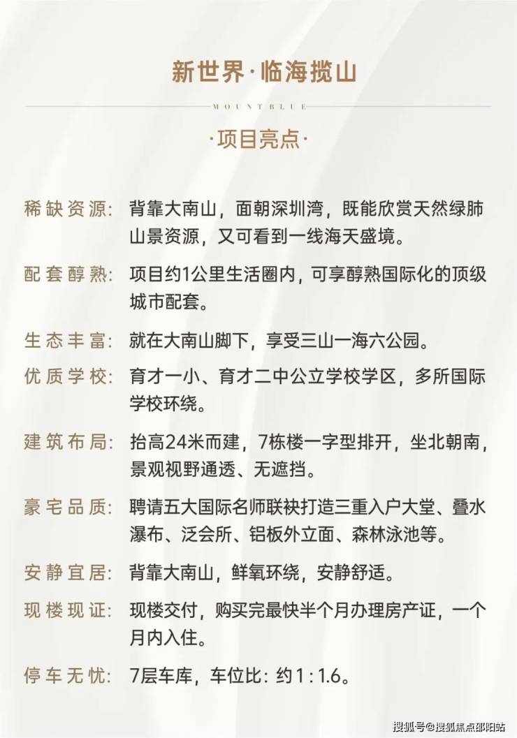 新世界·临海揽山位于南山蛇口半山传统豪宅区,属四区叠加的传统豪宅区,三面环山、正面瞰海,拥有丰富的城市配套、稀缺的山海资源以及名校学区,项目聘请五大国际名师以顶级豪宅标准打造,目前已是现楼,即买即办证即入住。