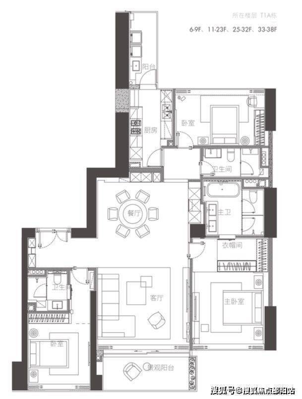 3. 主卧L形全景落地窗,270°最佳观海位。南向超大三厅一体,奢华大气。