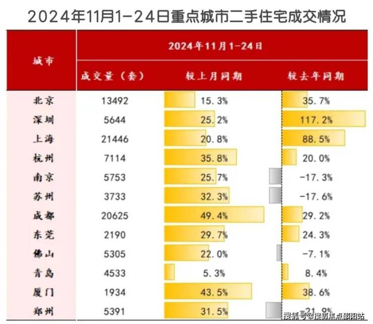 深圳二手房成交量环比、环比涨幅都领先同级别的北京、上海,同比涨幅同样领先所有重点城市。