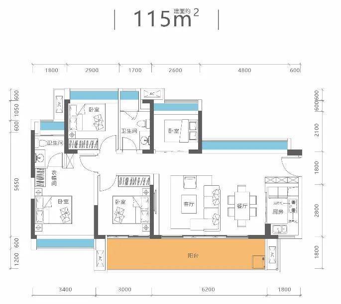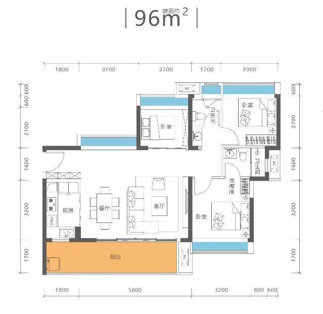 端头位:总赠送约270㎡,总面积达450㎡,赠送率160%;花园面积约100㎡